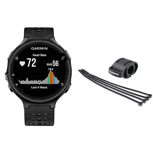 -. Binding : Electronics -. Brand : Garmin -. Color : Black/Gray -. Feature : GPS Running Watch with Wrist-based Heart Rate / Customize Your Watch and Your Training, Larger Screen - a 44% Larger Screen than the 225 but the Same Physical Size / Audio Prompts - Receive Audio Prompts from Your Connected Smartphone That Include Laps and Lap Times / Compatible with a variety of Garmin watches / Attach for a clean transition from running to biking / Quick and easy install -. Label : Garmin -. Manufacturer : Garmin -. PackageQuantity : 1 -. ProductGroup : Wireless -. ProductTypeName : GPS_OR_NAVIGATION_SYSTEM -. Publisher : Garmin -. Studio : Garmin -. Title : Garmin Forerunner 235 - Black/Gray with Bicycle Mount Kit