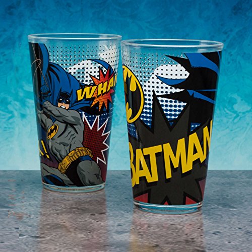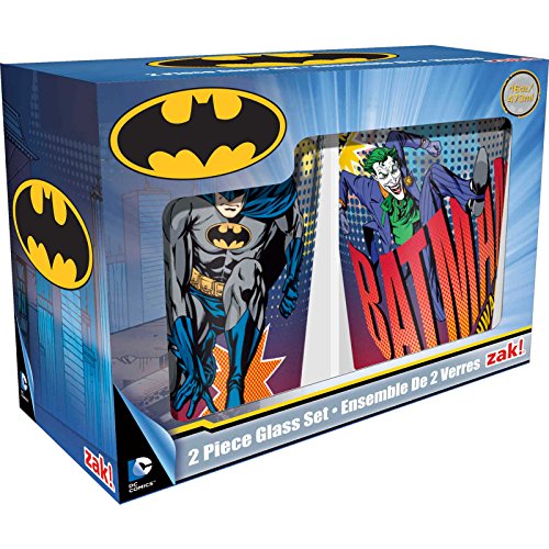 Zak Designs BATX-B080 Batman Comics Glass Tumbler 2 Piece Window box, 16 oz, Multicolor