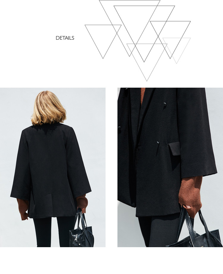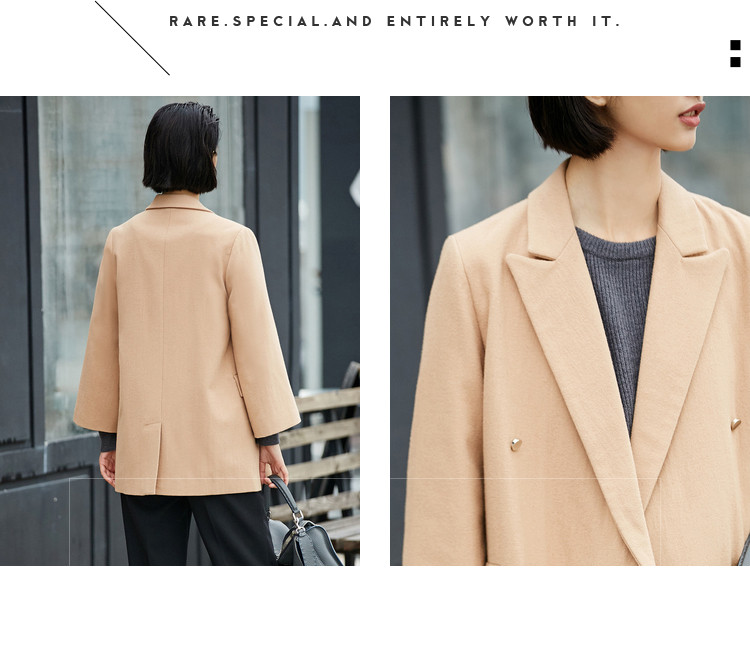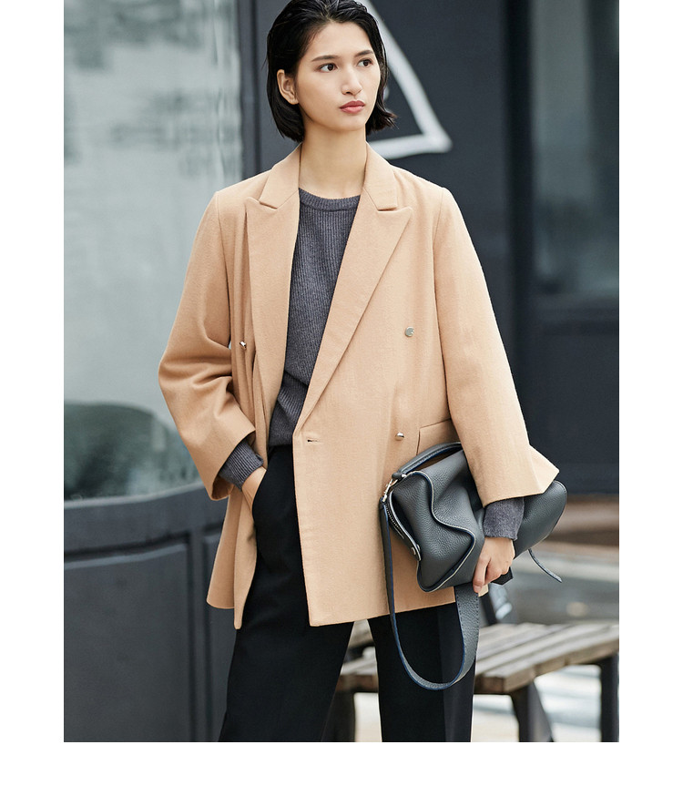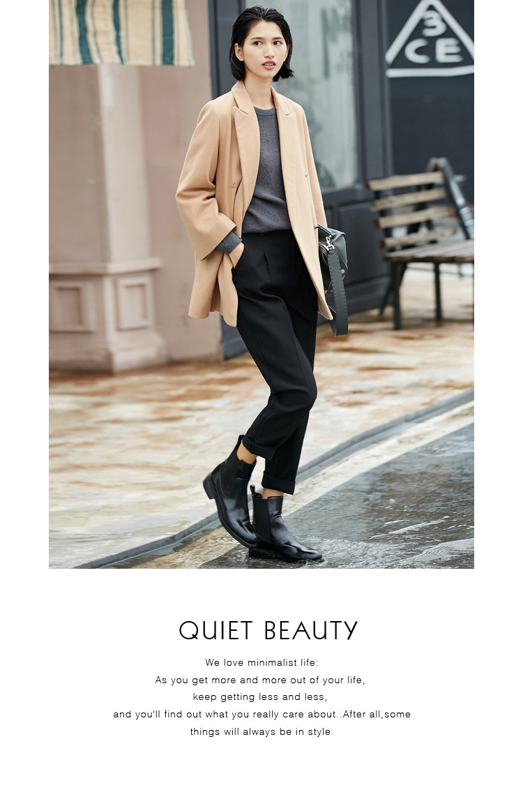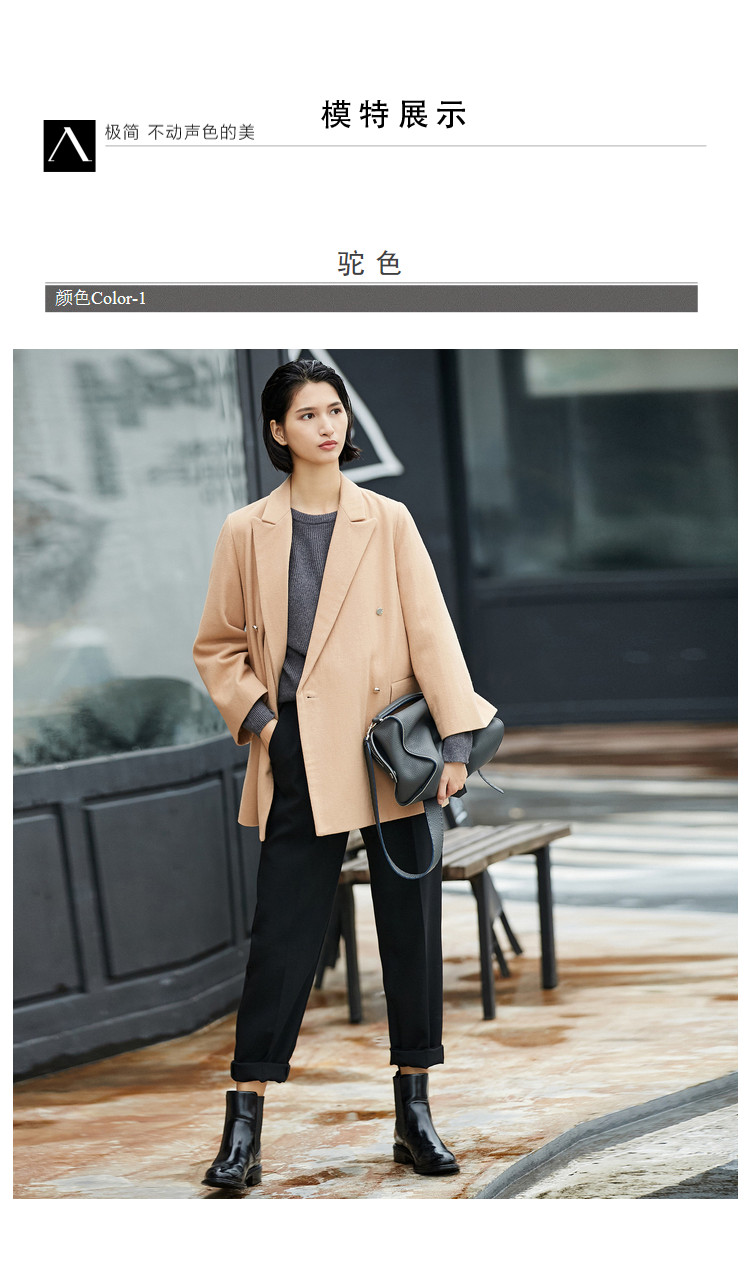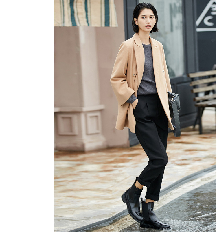 | 面料成分: | 面料:驼色:48%羊毛、52%聚酯纤维 黑色:48.9%羊毛、51.1%聚酯纤维(含微量其他纤维) 里料:100%聚酯纤维 |