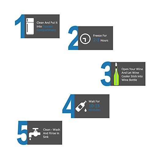 Instructions - Place the chiller rod in the freezer for minimum of 2 hours - Open your wine and let it aerate for 10-15 minutes - When ready to serve, pour off some wine to allow the chiller to be inserted into the bottle - Then just insert the wine chiller into the bottle and slowly pour about a glass of wine and start enjoying the aroma. - Wash and rinse in sink. - After cleaning, return Corkcicle to freezer. Reuse over and over again.