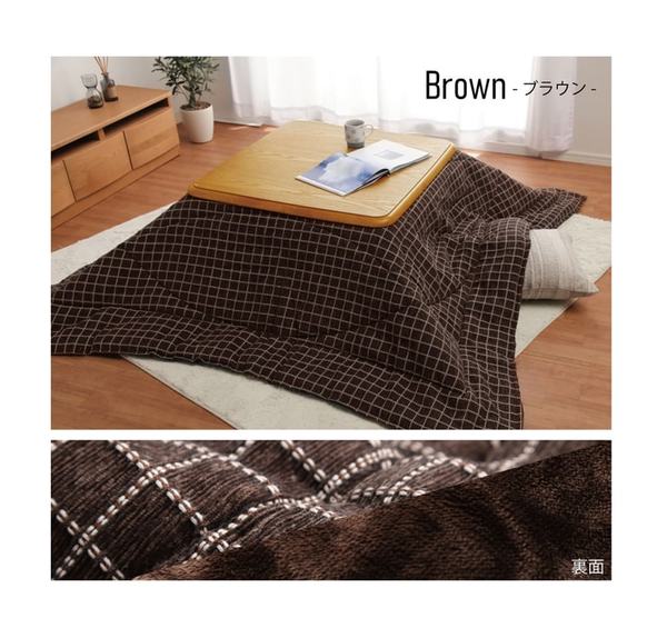 シンプルなデザインのこたつ布団です。表地にはシェニール糸を使用した生地を使用しています。裏地にはソフトな肌感触のフランネル生地を使用しています。薄手なのでかさばらず、コンパクトに収納できます。部分暖房のコタツは電気代もおトクです。