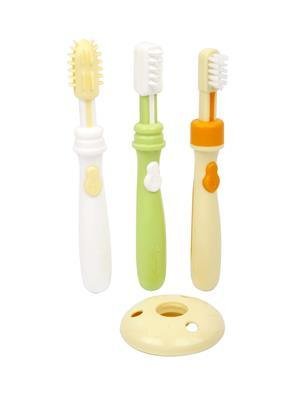 -. Binding : Baby Product -. Brand : Pigeon -. EAN : 0802194338897 -. Feature : For brushing teeth correctly / Toothbrush stage 1 for 6-8 months kids or have 2-3 teeth / Help kids to be familiar with holding toothbrush in mouth / Toothbrush stage 2 for 8-12 months kids or have 8-10 teeth / Help kids to brush their own teeth without toothpaste / Toothbrush stage 3 for 12 months up kids or have full teeth / Help kids to brush their own teeth with toothpaste and learn to spit water out -. Label : Thailand -. Manufacturer : Thailand -. ProductGroup : Baby Product -. ProductTypeName : BABY_PRODUCT -. Publisher : Thailand -. Studio : Thailand -. Title : Pigeon Baby Training Tooth Brush Lesson 1+2+3 Set -. UPC : 802194338897