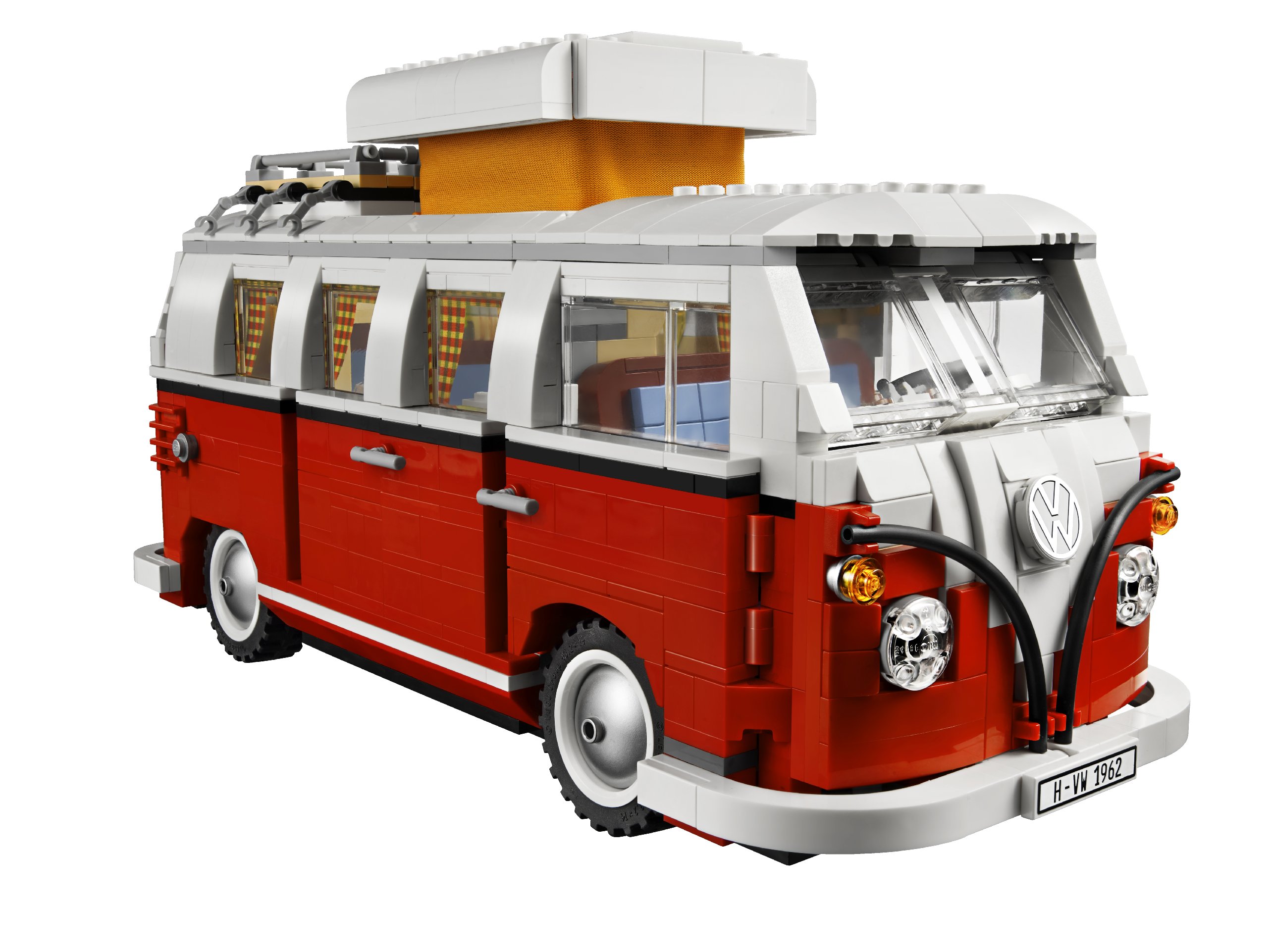 On the front is a 3-way color split design on the V shape, round shaped roof and windows, safari window shield, doors, iconic pop-up roof, etc.! The interior is also equipped with 4 cylinder boxer engine, front cabin