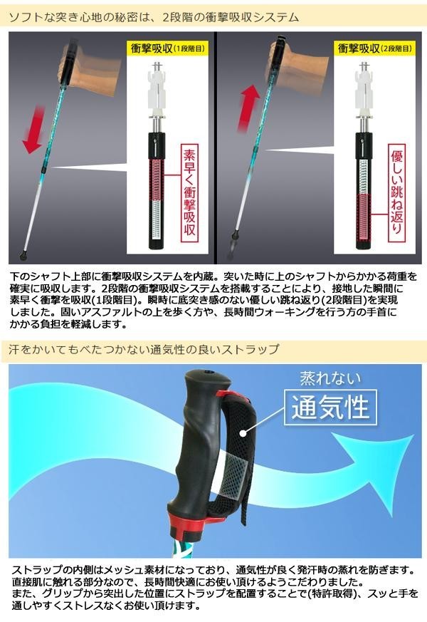 | 衝撃を吸収して手首の負担を軽減するウォーキングポール★ |