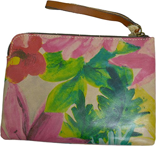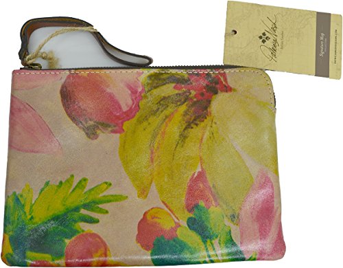 Product Description Delightful floral print blooms across this sleek Patricia Nash design fashioned in soft printed leather. Outfitted with discrete interior pockets and convenient wrist strap, it slips easily into your handbag or can be carried on its own. Patricia Nash bag Leather Wrist strap with 5" drop Top zip closure Brass-tone hardware; printed exterior Interior features zip pocket and 2 slip pockets 9" W x 6" H x 1" D 0