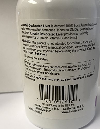 Liverite Desiccated Liver provides an excellent naturally occurring source of vitamin B, amino acids, vitamin A, vitamin C, vitamin D, iron, and calcium. Liverite 100% Argentinian Beef Grass-Fed Non-GMO liver is defatted and desiccated at a low temperature to retain all its nutrient value and benefits.Feature
