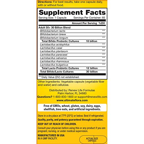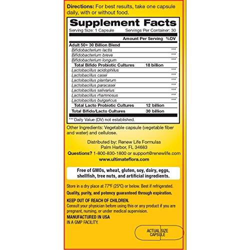 enew Life Ultimate Flora Adult 50+ Probiotic 30 Billion Supplement, 30 Caps