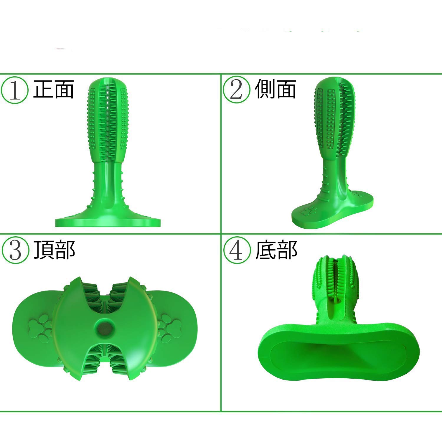内部には歯磨き粉を挿入できるくぼみがある。天然のラバー素材による起毛で歯から歯茎のラインまでキレイに磨いて歯肉炎を防いでくれるようだ。ペットちゃんは毎日これで歯を磨いて、歯垢除去、歯茎ケア、マッサージ、口腔の清潔を維持するのは病気や口臭が予防することができます。