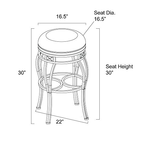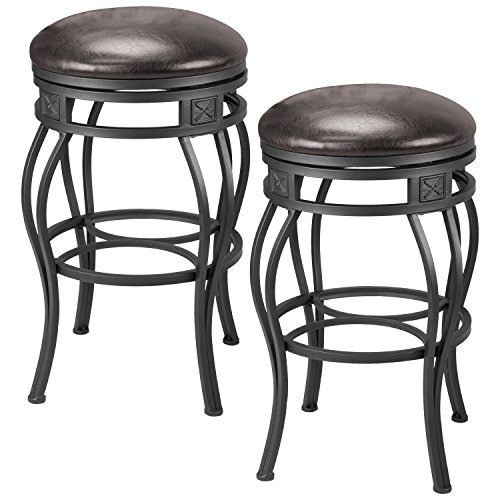 -. Brand : Revel -. Color : Old Steel -. Feature : Barstool Dimensions: / Backless barstool with unique design and 360 degree swivel / Faux Brown leather cushion / Can be purchased individually or in a set of 2 / Old Steel finish -. Label : Revel -. Manufacturer : Revel -. Model : BS2064291-BZ -. ProductGroup : Furniture -. ProductTypeName : HOME_FURNITURE_AND_DECOR -. Publisher : Revel -. Studio : Revel -. Title : New Monarch 30" Backless Metal Bar Stool, Old Steel Finish w/Brown Faux-Leather Seat