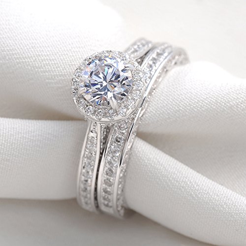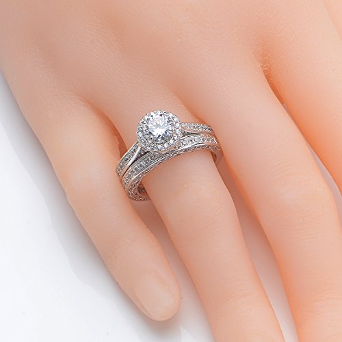 Title : Newshe Jewellery Alice 2.4 Carat Round White CZ 925 Solid Sterling Silver Wedding Band Engagement Ring Set Size 7