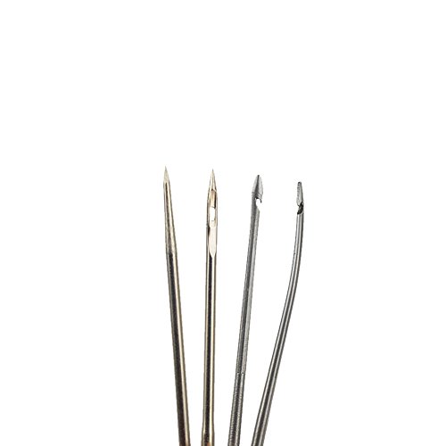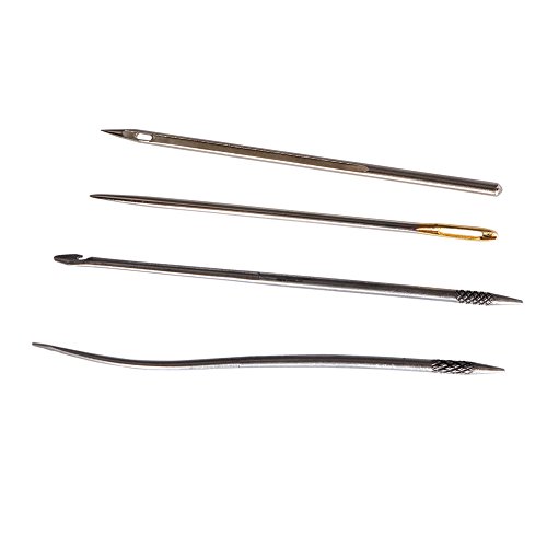 - Feature : Needles are sharp, keep them away from children / Made of high quality copper material and stainless steel / Golden can show fashion and nobility / Straight needle, straight hole needle, curved hook needle and straight hook needle can be changed and replaced easily / A great tool for sewing or repairing canvas leather, shoes, soles, bag, more convenient for household