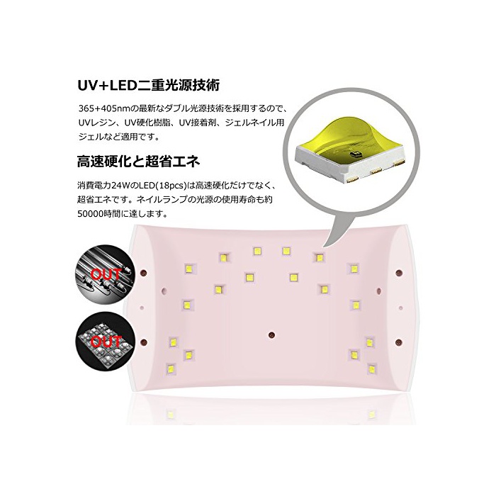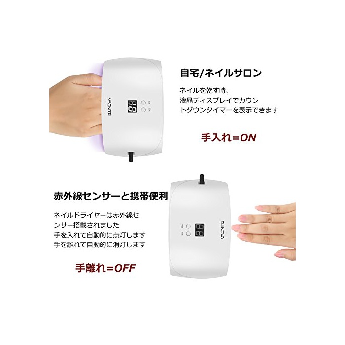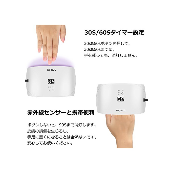 원본상품명: VACNITE UV LEDネイルドライヤ 24W 赤外線知 タイマ機能 時間設定30S/60S 99S自動消 日本語取扱明書付き ホワイト SUN 9X Plus