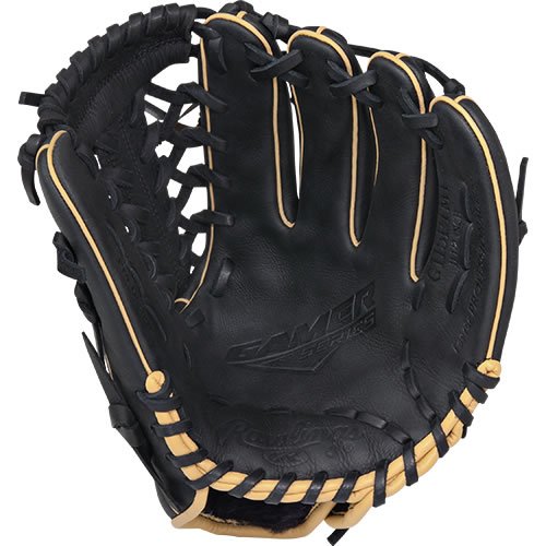 Rawlings Gamer Gloves with Pro Taper Modified Trap-Eze Web, Left Hand, Black, 11.5"