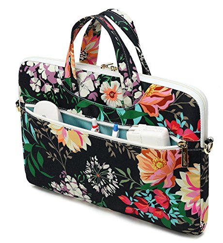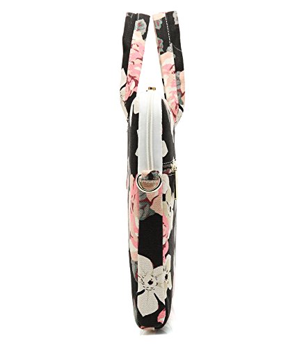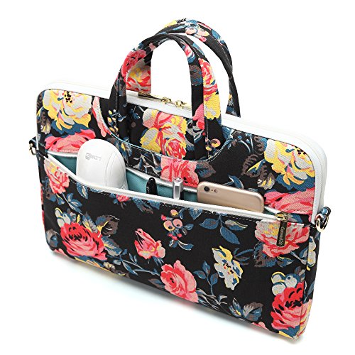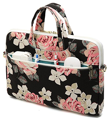 Canvaslove Black Flower Laptop Shoulder Messenger Case Bag (11 inch-13 inch & Macbook Air Pro 13)