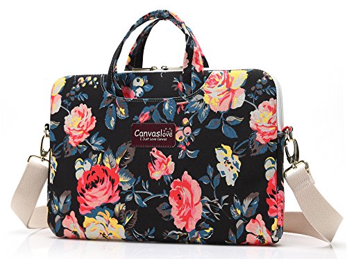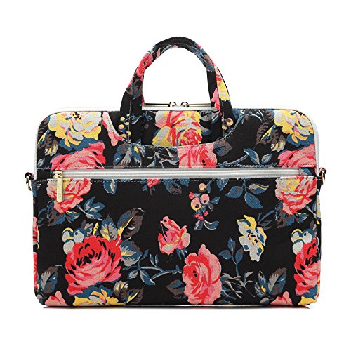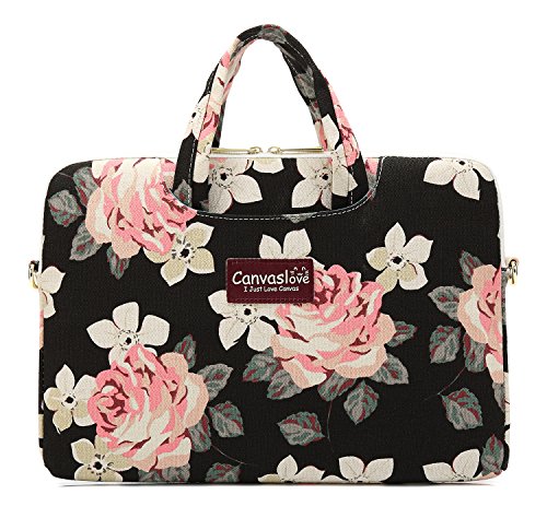Canvaslove Rose Pattern Canvas Laptop Shoulder Messenger Bag Case Sleeve 15 inch for 14 Inch 15.6 Inch Laptop Macbook Pro 15 Case Laptop Briefcase 15.6 Inch