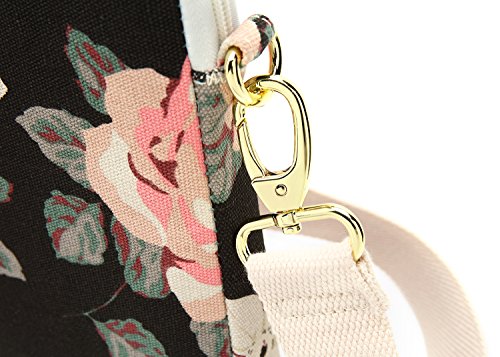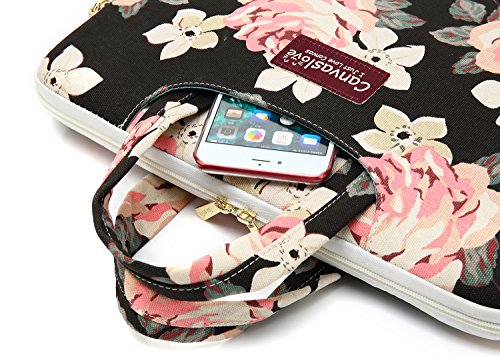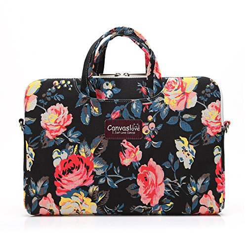 Canvaslove Black Rose Waterproof Canvas Laptop Shoulder Messenger Bag Case Sleeve for 11 Inch 12 Inch 13 Inch Laptop and Macbook Air Pro 11 /12/ 13
