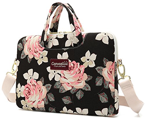 Canvaslove Rose Pattern 13 inch Canvas Laptop Shoulder Messenger Bag Case Sleeve for 11 Inch 12 Inch 13 Inch Laptop Macbook Air Pro 13 laptop shoulder bag