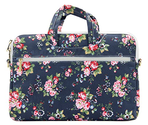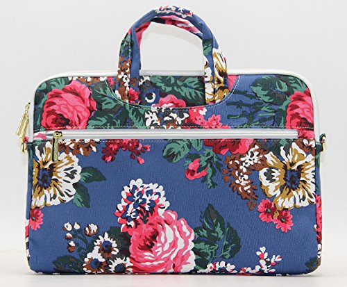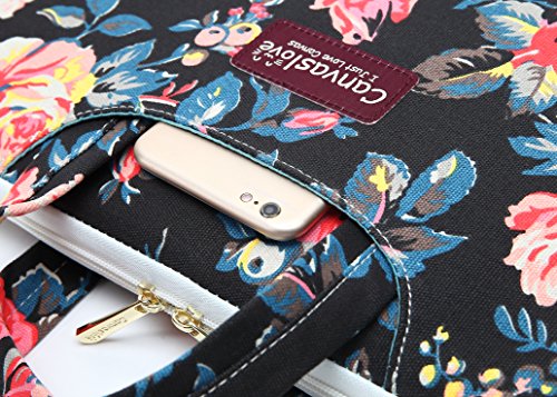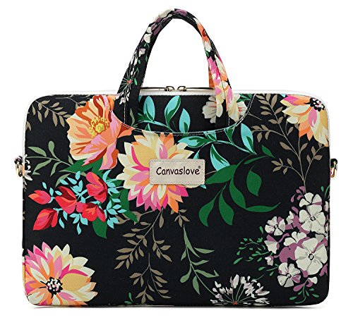 Canvaslove Flower Pattern Canvas laptop shoulder messenger bag case for 14 Inch 15 Inch Laptop Macbook Pro 15 Case Laptop Briefcase 15.6 Inch