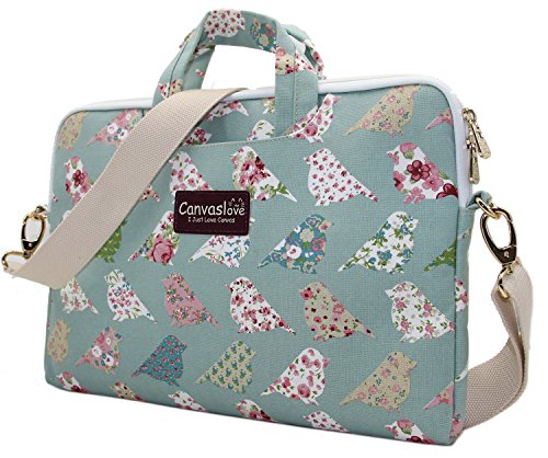 Canvaslove Green Bird Pattern Canvas Laptop Shoulder Messenger Bag Case Sleeve for 11 Inch 12 Inch 13 Inch Laptop and Macbook Air Pro 11 /12/ 13