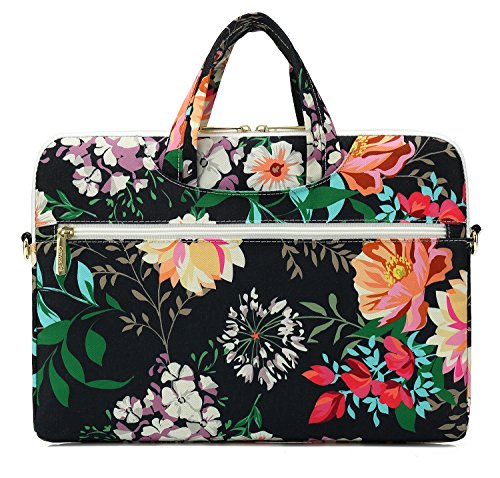 Canvaslove Black Flower Laptop Shoulder Messenger Case Bag (14 inch-15 inch & Macbook Pro 15)