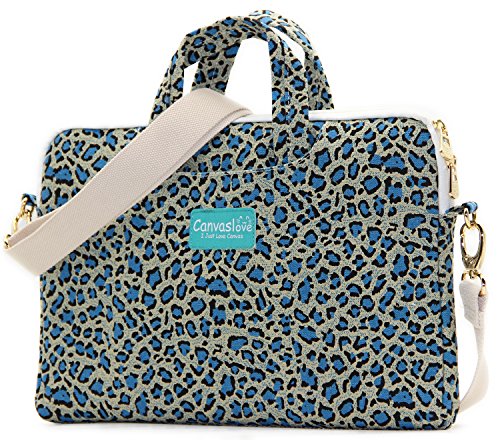 Canvaslove Blue Leopard Patten Canvas Laptop Shoulder Messenger Bag Case Sleeve Laptop Briefcase 11 Inch/12 Inch/13 Inch/macbook Pro (Air) 13