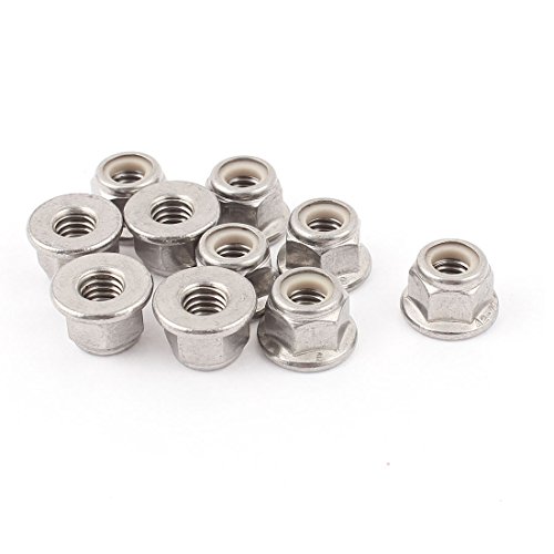 uxcell M6x1mm Stainless Steel Hex Flange Nylon Insert Locking Nuts 10 Pcs