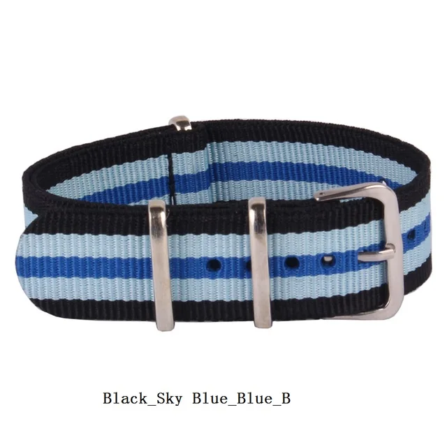 상품 내용 소재:나일론 스트랩, 스테인레스 스틸 버클 밴드 폭:20 미리메터 밴드 길이:260 미리메터-265 미리메터 걸쇠 유형:버클 봄 바:포함 색상:블랙-라이트 블루 블루 B 포장 상세
