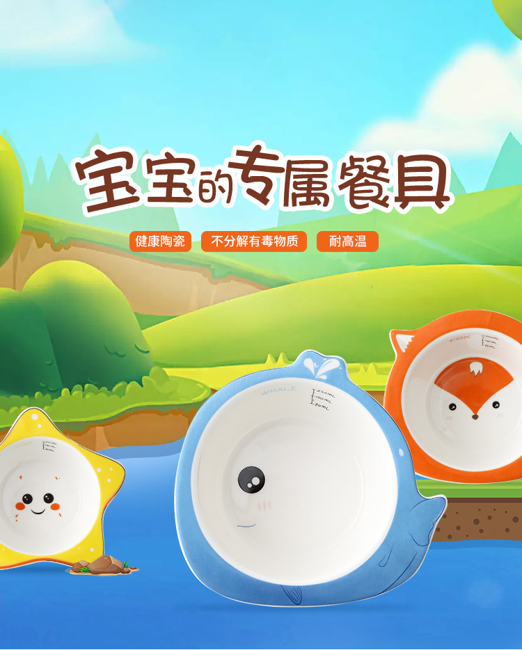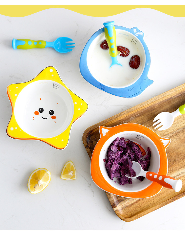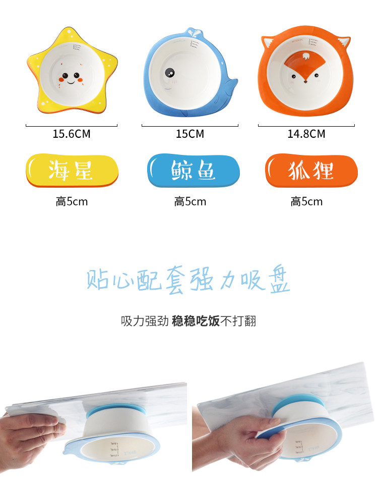 家用可爱卡通儿童碗带吸盘 陶瓷婴儿辅食蒸蛋碗宝宝碗