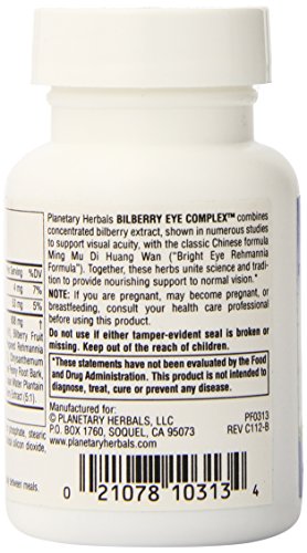 ReleaseDate : 2015-06-22 Studio : Planetary Herbals Publisher : Planetary Herbals Binding : Health and Beauty Product Description Planetary herbals bilberry eye complex combines concentrated bilberry extract, shown in numerous studies to support visual acuity, with the classic Chinese formula ming mu di huang wan. Nourishing support for normal vision. Provide rich amounts of anthocyanosides. Delivers potent antioxidant protection. 0