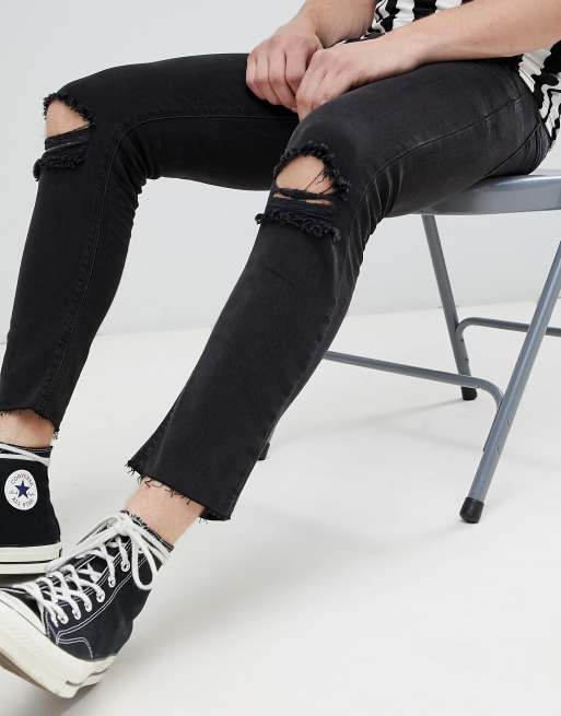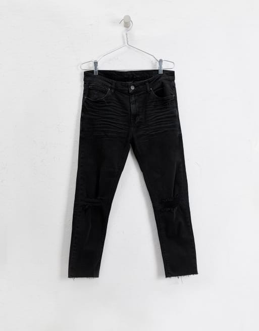 ASOS DESIGN super skinny cropped jeans in washed black with busted knees