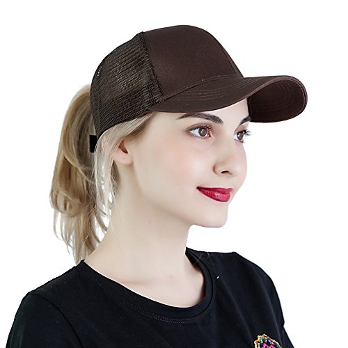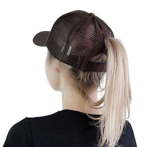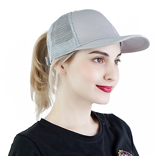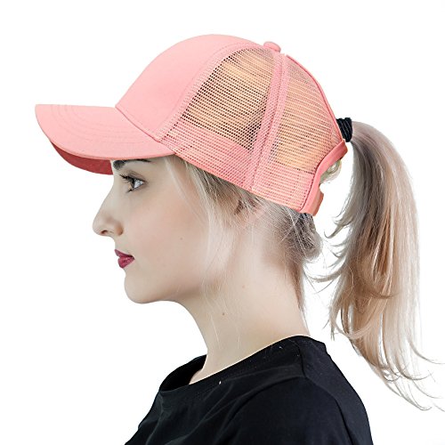 -. Title : EDINSY Women Mesh Back Hat Ponytail Cap Messy High Bun Ponycap Mesh Trucker Travel Shading Adjustable Baseball