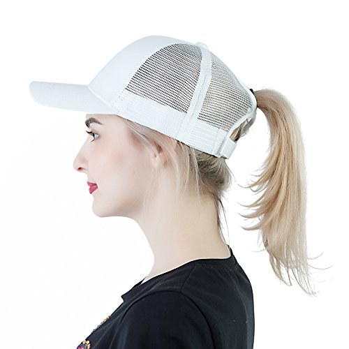 -. Feature : 60% Soft Brushed Cotton 40% Polyester,breathable&lightweight / There is a stealth cotton sweatbelt, which is more comfortable to absorb sweat and breathe.Hole to make messy buns, tails and other lovely hairstyles / Head measurement:22-23.6",Adjustable hook&loop back / Ponytail cut out compartment: 3" x 1/2" - simply rubber band your hair up and slide in, adjust and tighten / Everyday mesh trucker adjustable hat.perfect to wear while doing light exercises such as walking, cycling, frolfing and golfing. This trucker hat is also ideal for attending sporting events, sunbathing at a beach, pool, or lake. Also, fun for boating, camping, music festivals, bomb fires, summer camp, lounging, outdoor events and baseball games to name a few.