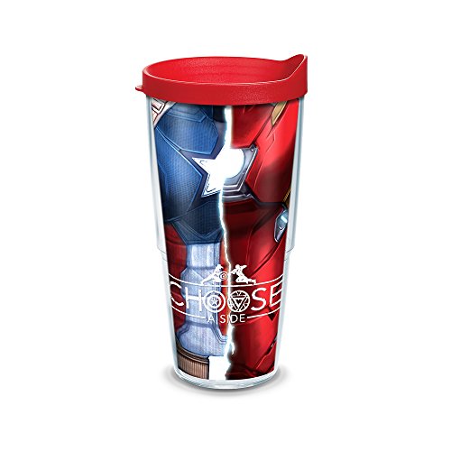 Tervis Marvel Captain America Movie Torso Wrap Clear Inner Tumbler with Red Lid, 24 oz