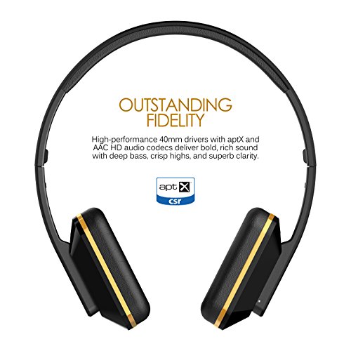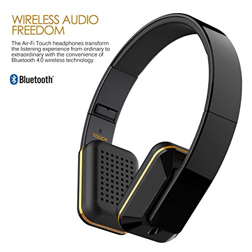 -. Binding : Electronics -. Brand : MEE audio -. Color : Black/Gold -. EAN : 0616312625376 -. Feature : Versatile stereo headphone can be used both wired (audio only) and wirelessly with phones and tablets / Sleek design with easy-to-use touch control interface and built-in hidden microphone / Bold, high-definition sound with deep bass and superb clarity / Bluetooth 4.0 technology with support for aptX and AAC HD audio codecs; 24 hour battery life / Folds conveniently into included hard-shell carrying case; includes 1-year manufacturer's warranty -. Label : MEElectronics -. Manufacturer : MEElectronics -. Model : HP-AF65-BK-MEE -. MPN : HP-AF65-BK-MEE -. PackageQuantity : 1 -. PartNumber : HP-AF65-BK-MEE -. ProductGroup : CE -. ProductTypeName : HEADPHONES -. Publisher : MEElectronics -. ReleaseDate : 2015-01-01 -. Studio : MEElectronics -. Title : MEE audio Air-Fi Touch Advanced Bluetooth Wireless Headphones with Touch Control, Headset Functionality, aptX and AAC Support -. UPC : 616312625376