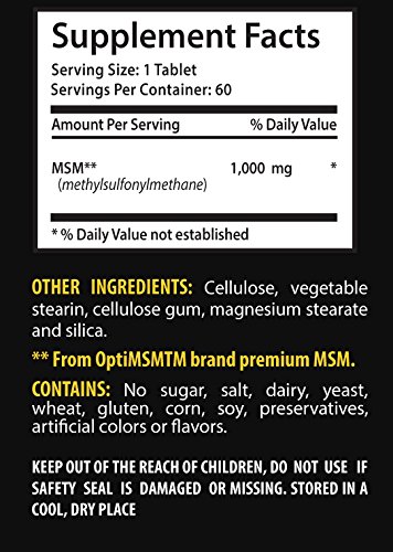 Studio : SKIN CARE SOLUTIONS Publisher : SKIN CARE SOLUTIONS Binding : Health and Beauty Product Description Bone vitamins for men - MSM (Methylsulfonylmethane) - Msm for bone health - 2 Bottles 120 Tablets JOINT SUPPORT: Research has shown that MSM is can be beneficial for improving joint flexibility. Additionally, it helps to produce flexible skin and muscle tissue. This leads to an increase in overall flexibility due to a restoration of the "juiciness" in the tissues. SKIN SUPPORT: MSM is necessary for collagen production. Sagging skin and wrinkles, as well as dry, cracked skin are all developed through a loss of collagen. MSM works together with Vitamin C to build new, healthy tissues. MSM can normalize collagen formation and radically improve skin health. ENERGY BOOSTER: Another MSM benefit is that energy levels increase because MSM helps make the cell walls more permeable. When MSM goes into the body the permeability of the cell walls greatly increases, enhancing the absorbtion of nutrients and oxygen and helping release the toxins which were stuck in cells. When these toxins leave us, it helps to increase our energy. POWERFUL DETOX: Like we mentioned above, MSM makes your cells more permeable, allowing toxins and metabolic wastes to easily exit your cells. This important detoxifying effect is a way that essential nutrients make their way into your system, raising the overall functioning of your cell membranes. 0