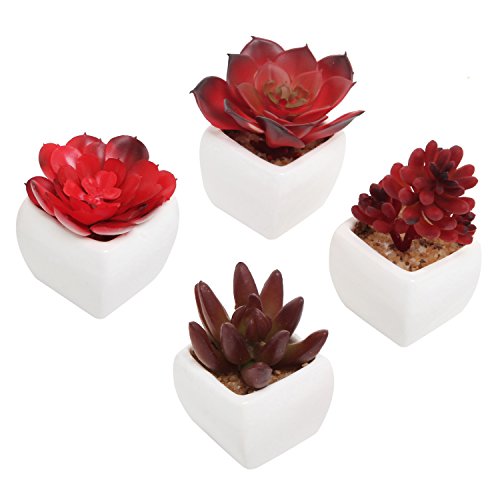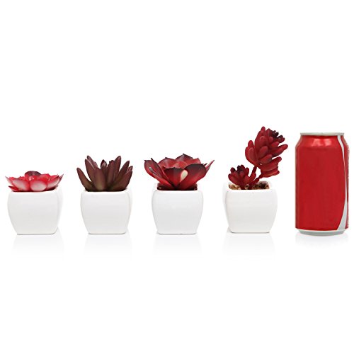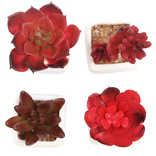 Red Artificial Succulent Plants in Mini Ceramic Pots, Set of 4