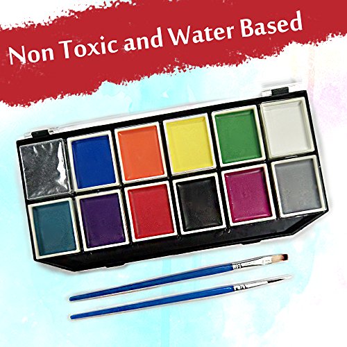 Professional Face Paint Kit for Kids | 12 Vibrant Color Palette | Face Painting and Body Painting Set: Sturdy case & Stencils | Face Paint Kits | Hypoallergenic, 100% Safe, FDA Approved | Halloween