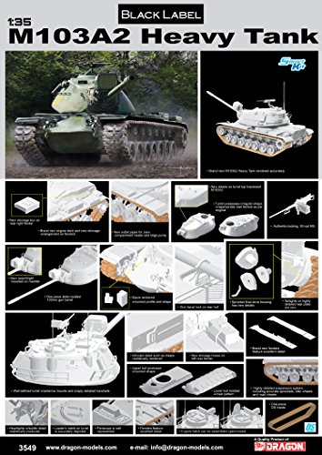 モデラーの話題を集めながら幅を広げているドラゴンのブラックラベルシリーズの最新作として M103A2 を再現。もちろん、実車同様に M103A1 からの改修ポイントは 1/35 スケールでもしっかりとモデル化され、その違いを確かめていただけるモデルに仕上がっています。エンジン換装によりデザインも変更されたエンジンデッキ、車体のリヤパネルをはじめ、フェンダー上の工具ボックスやマフラーも新規パーツで違いを再現。M103A1 とは違った表情が楽しみです。さらに、エンジンデッキ、リヤパネルの変更に伴って変更された新しい主砲のトラベリングロックや左右フェンダー、アウトレットパイプなど、細部に至るまで M103A1 と異なる部分は新金型パーツで製作し、違いを確実にモデル化しました。 【主な特徴】 ■エンジンデッキやリヤパネルをはじめ、M103A1と異なる部分は細部に至るまで新規パーツで再現 ■独特なフォルムの砲塔や車体の鋳造肌も手直しを加え、再現度は更にレベルアップ ※スケール1/35 ※この商品はプラモデルです。 ※組み立て塗装が必要になります。