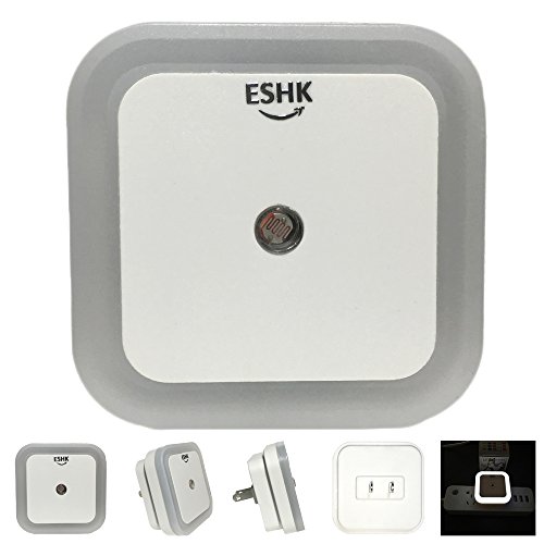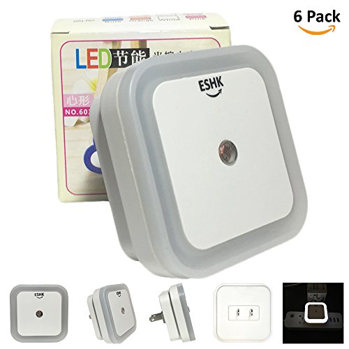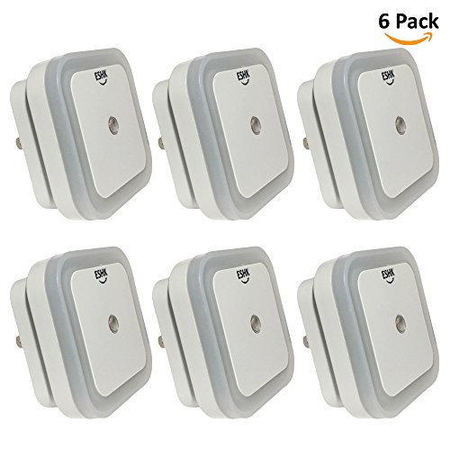 ESHK 0.5W Plug-in LED Night Light Lamp with Dusk to Dawn Sensor for Bedroom, Kids Room, Nursery, Hallway, Kitchen, Bathroom, Cool White, 6-Pack