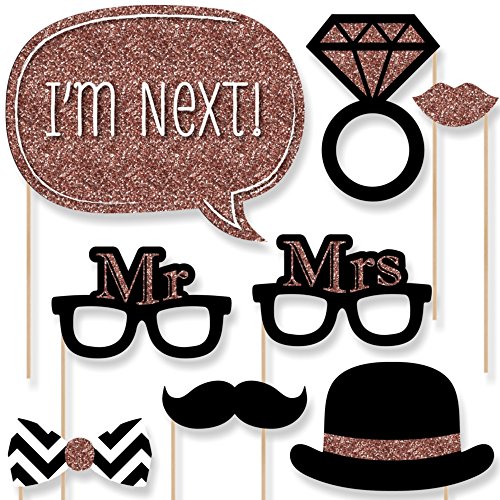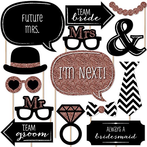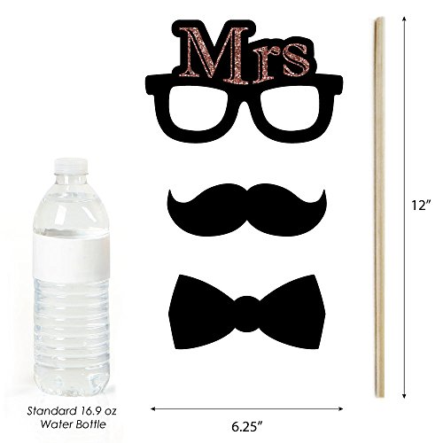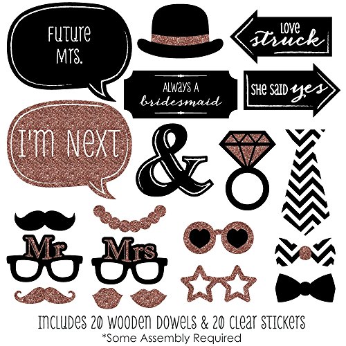 20-Piece Bridal Shower or Wedding Shower Photo Booth Props Kit INCLUDES 20 Rose Gold photo booth props, 20 wooden dowel sticks and adhesives for assembly. EASY ASSEMBLY: Simply attach the printed DIY photo booth props to the wooden dowels with included adhesive and reinforcing stickers.
