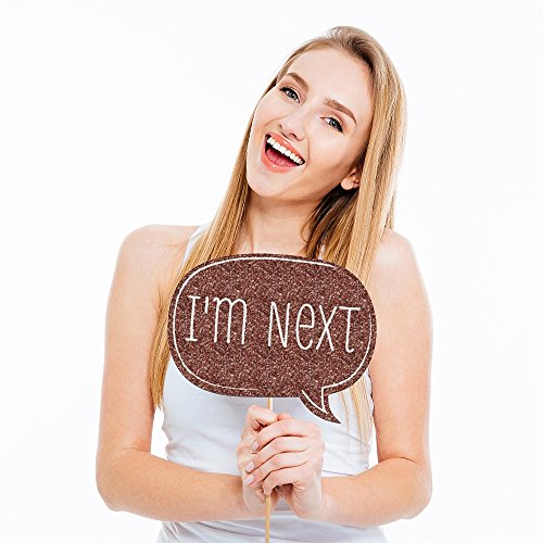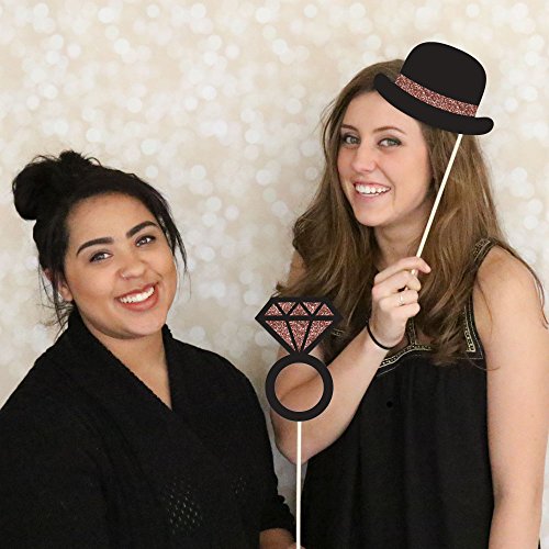 HIGH-QUALITY PARTY SUPPLIES: Rose Gold photo booth props are professionally printed on thick cardstock paper. They will arrive cut out and ready to assemble with the included wooden dowel sticks and adhesives. Rose Gold Bridal Shower photo booth props use a No-Mess Glitter Print: Our photo booth props are designed with a printed image of glitter, eliminating glitter flake while maximizing bling effect!