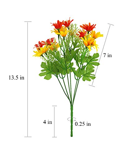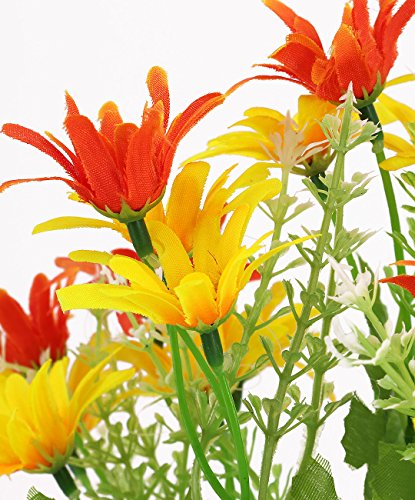 La moriposa 6pcs 17 Heads Artificial Daisy Silk Flowers for Household Adornment Window Garden Office Wedding party (Red and Yellow)