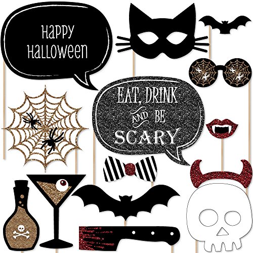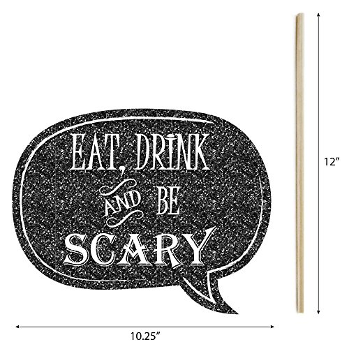 HIGH-QUALITY PARTY SUPPLIES: Spooktacularly Sophisticated Halloween photo booth props are professionally printed on thick cardstock paper. They will arrive cut out and ready to assemble with the included wooden dowel sticks and adhesives. Spooktacularly Sophisticated Halloween photo booth props use a No-Mess Glitter Print: Our photo booth props are designed with a printed image of glitter, eliminating glitter flake while maximizing bling effect!