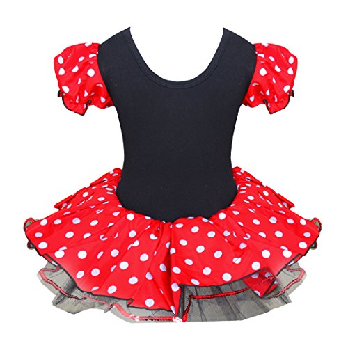 -. Brand : FEESHOW -. Color : Red Black -. Department : baby-girls -. Feature : Material: Cotton, polyester / Round neckline, short puff sleeve / Three layers of black tulle with red sequins trim / Adorable red polka dots leotard dress (with panties inside) / Suitable for holiday, party, Halloween or Christmas -. ProductGroup : Apparel -. ProductTypeName : BABY_COSTUME -. Title : FEESHOW Baby Girls' Minnie Mouse Party Fancy Dress up Costume with Headband