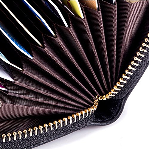 --The wallet is made from rich soft-touching leatehr and fwith multiple pockets for storage and organization. Available in a wide range of fashion colors for ladies men, this leather card holder wallet features a zip around pocket with 9 card slots to hold credit cards and debit cards 2 coins/cash compartments.