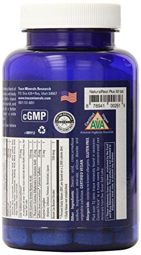 -. Binding : Health and Beauty -. Brand : Trace Minerals Research -. Label : TRACE MINERALS RESEARCH -. Manufacturer : TRACE MINERALS RESEARCH -. PackageQuantity : 1 -. ProductGroup : Health and Beauty -. ProductTypeName : HEALTH_PERSONAL_CARE -. Publisher : TRACE MINERALS RESEARCH -. Studio : TRACE MINERALS RESEARCH -. Title : NaturalRest Plus