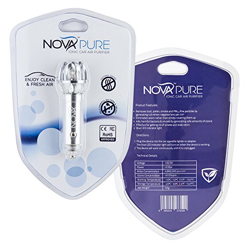 - PROVEN PERFORMANCE: NovaPure is a state-of-the art in-car air purifier that offers proven filtration of fine particles, toxic gases, and reliable odor elimination. Most other “purifying” products simply cover up unpleasant odors, while NovaPure ionizer effectively removes nasty smells and smoke, truly purifying the air from an array of chemicals and harmful PM2.5 particles.