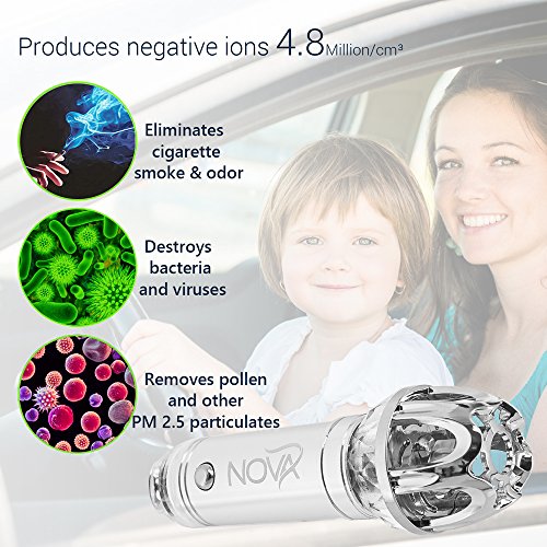 - POWERFUL NEGATIVE IONS & OZONE GENERATOR: NovaPure is an efficient ionizer that generates 4.8 million negative ions per cm3 as well as safe amounts of ozone, to make sure that you’re breathing the best air possible, even in heavy downtown traffic. A true investment in your health, it’s a must-have accessory for everyone suffering from allergies or respiratory conditions.