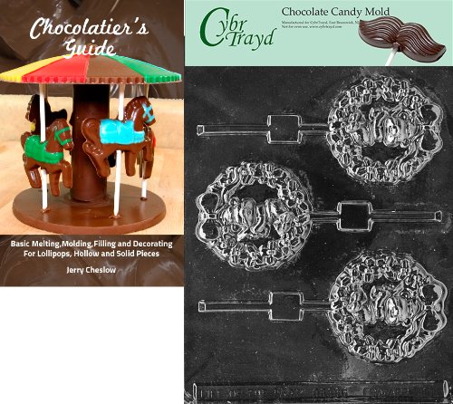 Cybrtrayd 'Bear in Wreath Lolly' Christmas Chocolate Candy Mold with Chocolatier's Guide
