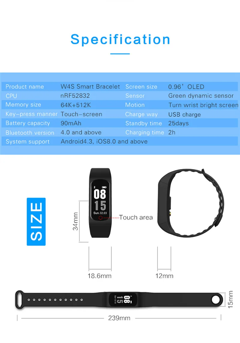 펜던트 선물, 목걸이 시계, 목걸이 시계, 체인 시계, 석영 시계, 패션 보석, 스팀 펑크 펜던트, sheampunk 시계, 연인 선물, 친구 선물, 아이 선물, 어린이 선물, 소년 선물, 소녀 선물. 2016 포켓 와트 제품 특징: CPU: 북유럽 52832 가속 속도: KX023 세 축 가속도 센서 심장 박동: 정적 및 동적 심장 박동 모니터링. 정확도 속도 기본적으로 동기화 전문 심장 박동 벨트 곡선. 정확도 속도 동적 심장 박동 비해 손색이 수 있는 전문 심장 박동 벨트. 원격 음악 제어 기능. 음악 동 기적으로 않고 켜기 스마트 전화 스위치 노래 자유롭게. 바디 온도 모니터링 기능. 알고 바디 온도 차이가 트렌드 언제든지 피하기 숨겨진 질환 적당해요. USB 인터페이스 충전 도움이 없애 충전. APP 호환 언어: 중국어 간체, 영어, 그리스어, 프랑스어, 독일어, 이탈리아어, 스페인어, 네덜란드어, 포르투갈어, 러시아어, 터키어, 일본어 사양: 화면 크기: 0.96 인치 OLED (해상도 비율 64*128) 팔찌 재질: TPU 외관 크기: 42*19*13 미리메터 팔찌 범위: 23.0 센치메터 작동 모드: 터치 버튼 스위치 부드럽게 대기 시간: 25 일 배터리 용량: 90 미리암페르하우어 충전: 5 볼트/500mA 방수 360도: IP67 블루투스 버전: 4.0 센서: 녹색 빛 동적 심장 박동 센서 시스템 지원: 안드로이드 4.3, IOS 8. 0 패키지 내용: 1 x W4S 스마트 시계 1 x 수동 포장 상세